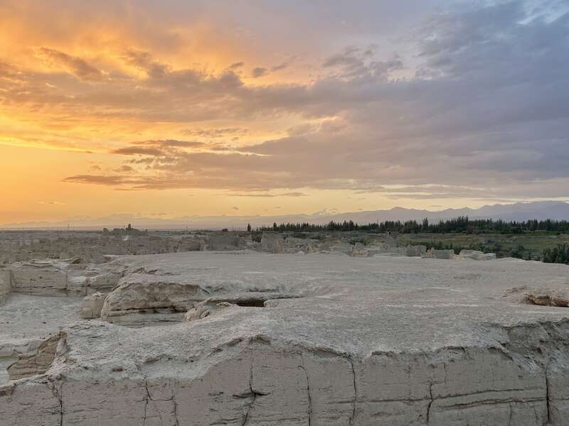 6月24日21时30分傍边,新疆维吾尔自治区吐鲁番市,夕阳下的交河故城。中青报·中青网记者 贾骥业/摄