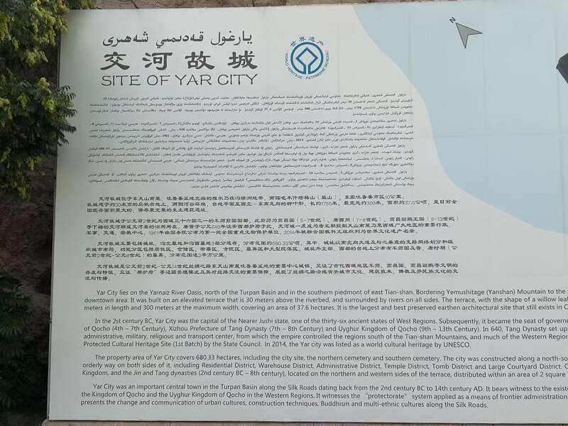 6月24日,新疆维吾尔自治区吐鲁番市,交河故城景区门口的先容。中青报·中青网记者 贾骥业/摄