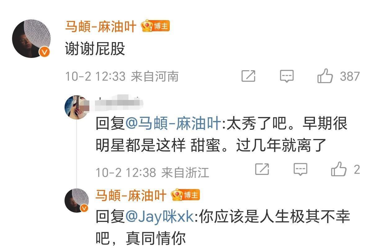 10月2日,马頔和李纯领证成婚啦!这讯息一出来,可把粉丝们乐坏了,大家纷繁奉上祝愿,不外这其中也有点小插曲,有个小黑粉说一些丧气话,頔哥绝不惯着,平直怒怼他东说念主生极其苦难!