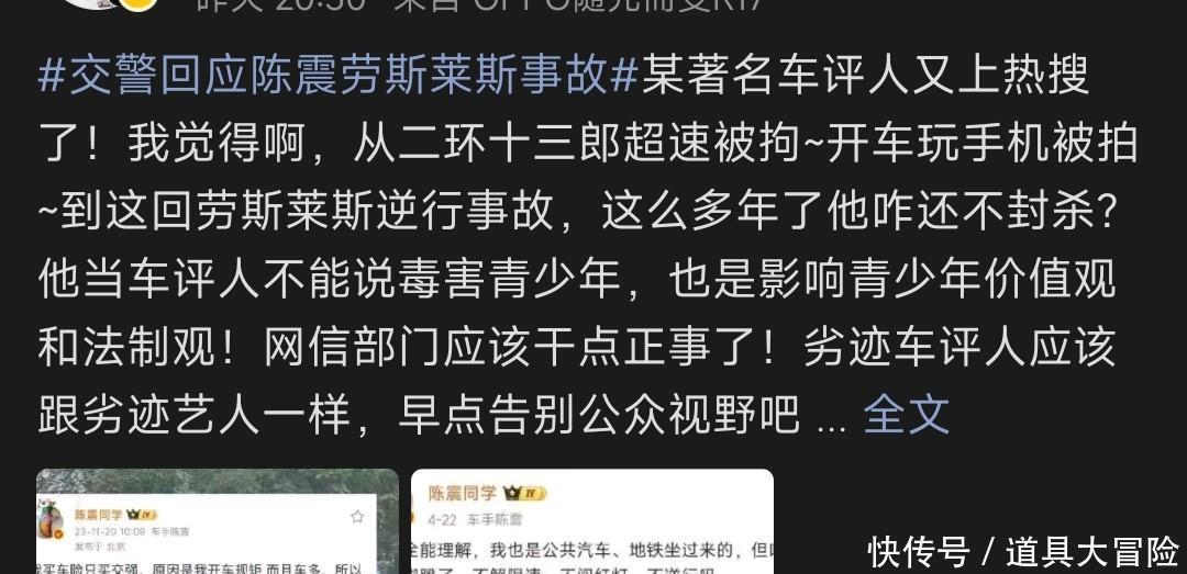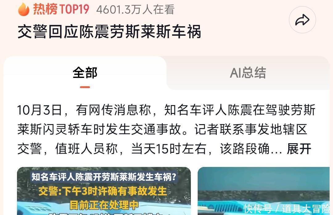 昨天,车评东说念主陈震因为一场始料未及的车祸上了这几年最大的一个热搜。真可谓是功德不外出,赖事传沉。陈震驾驶我方的豪车劳斯莱斯闪灵交通事故,这新闻太炸裂,网友们王人在恭候陈震修起,可即是迟迟等不来当事东说念主的具体修起。