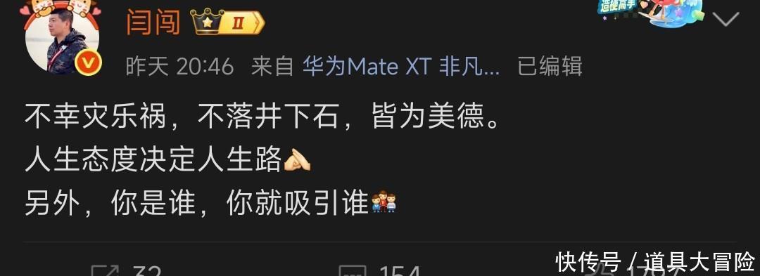 据网友爆料几年前闫闯也发生过一场严重的交通事故,其时他面临的公论压力亦然不小,是以关于当下陈震受到的鸣鼓而攻,闫闯说了:凄沧灾乐祸,不投阱下石。
