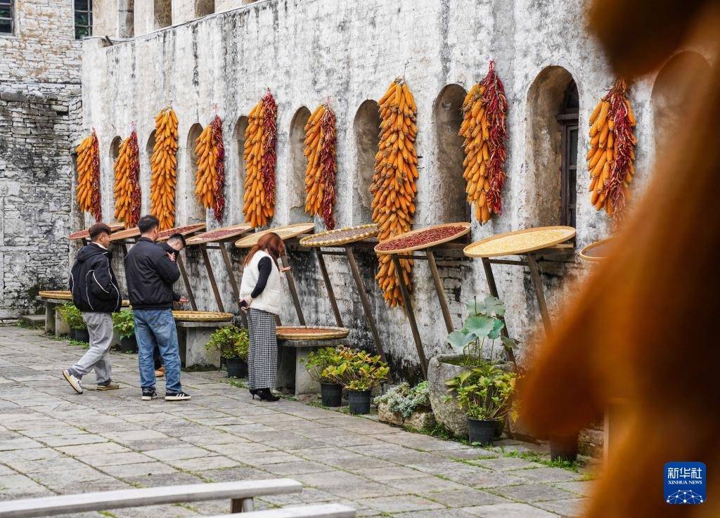 10月24日,东说念主们在贵州安顺天龙屯堡古镇参不雅晒秋场。