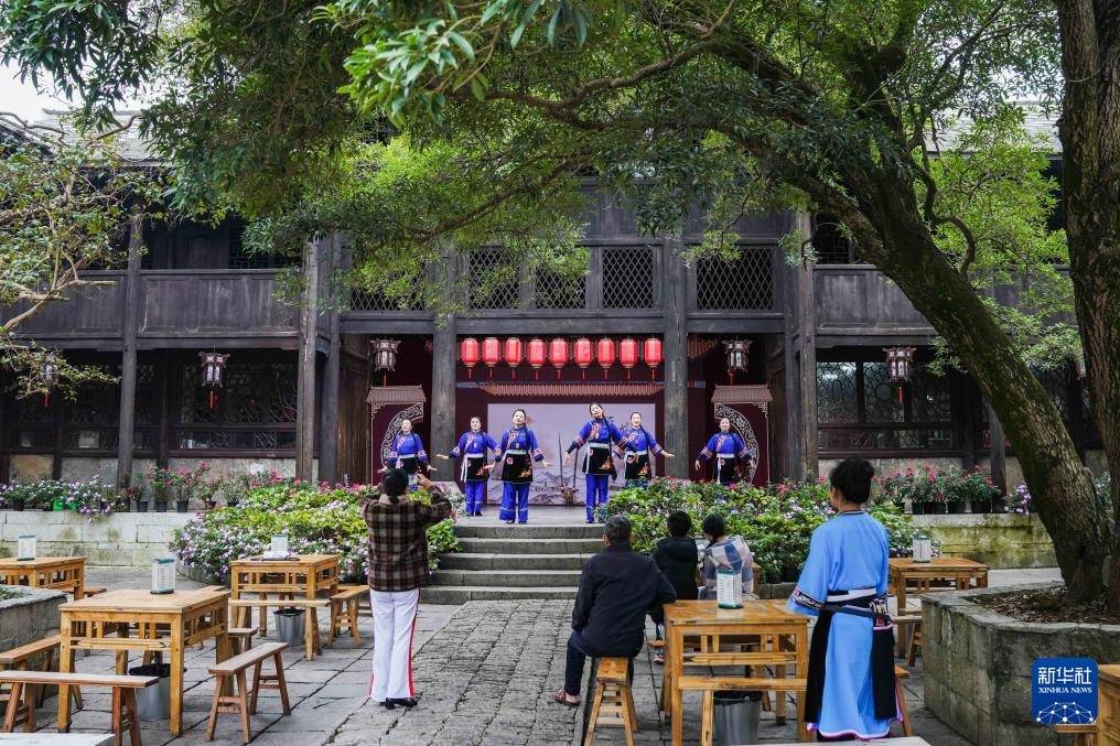 10月24日,东说念主们在贵州安顺天龙屯堡古镇不雅看上演。